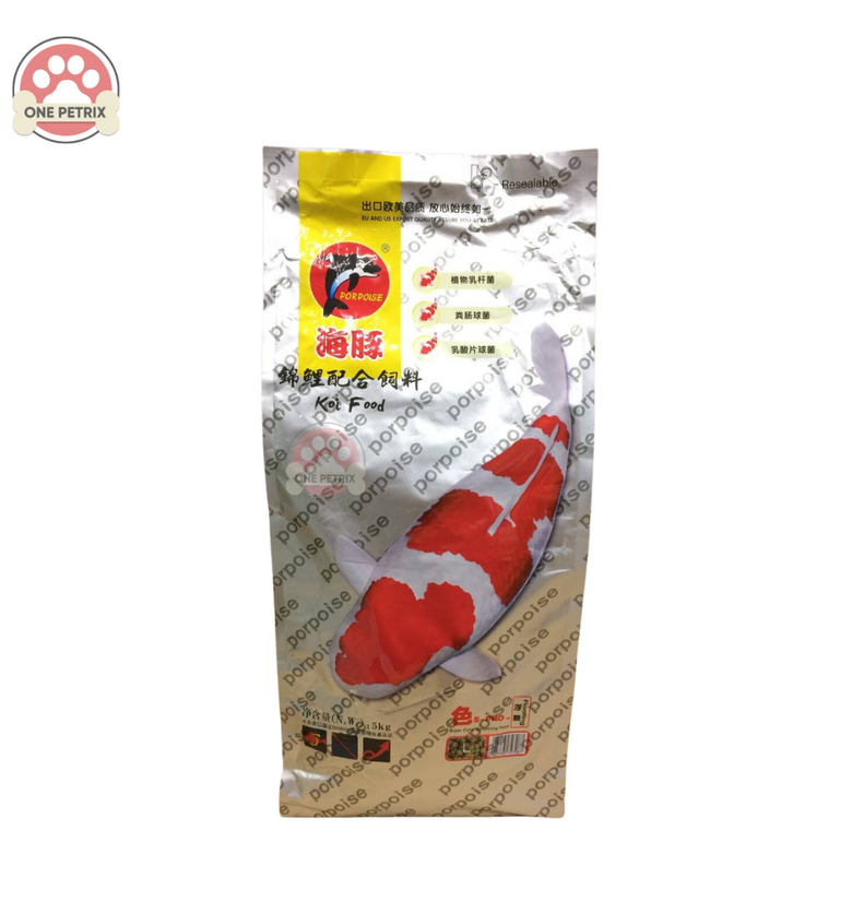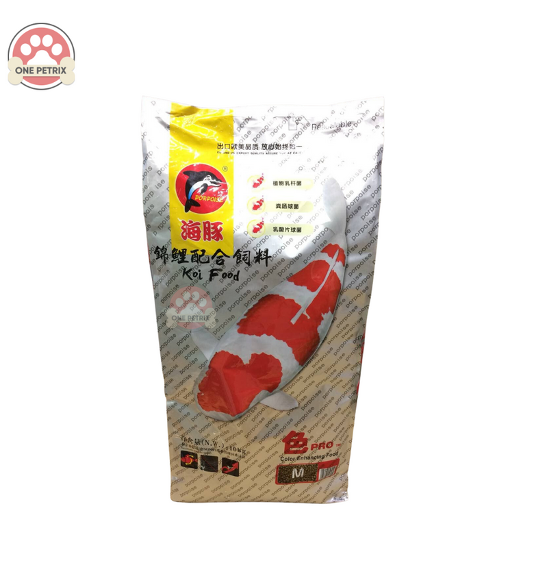 PORPOISE COLOR ENHANCING Food (floating) Probiotics Koi Food Pellet Size: Medium | Large NATURAL RAW MATERIAL: COD - Rich in protein, amino acid and unknown growth factor and so on, which can promote growth and development ANTARCTIC KRILL - Rich in protein, chitin and natural astaxanthin, which can enhance color and improve growth SPIRULINA - Rich in protein, vitamins, carotenol, and phycocyanin and so on, which can enhance color, improve the intestinal function, and immunity PROBIOTIC - Lactobacillus plantarum - Enterococcus faecalis - Pediococcus lactis THIS PRODUCT COMPLIES WITH THE HYGIENAL STANDARD FOR FEEDS *Please read FEEDING RECOMMENDATIONS at the back of the packaging* STORAGE: Keep in dry and cool place. Please use up within 2 months after open ATTENTION: Please keep away from children. This product can't be used for feeding ruminant animals. Natural raw materials are selected for production. The appearance and color may vary slightly with different batches of raw materials. The product effect will not be affected. Please feel free to use. NOT FOR HUMAN CONSUMPTION