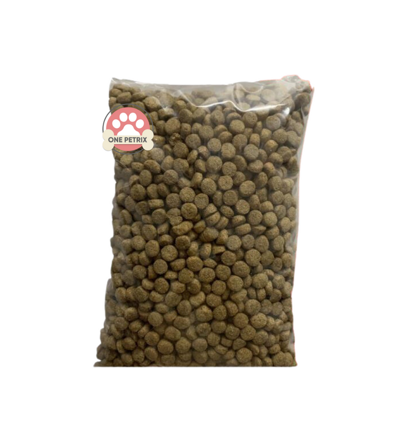 Ingredients: Meat, meal, ground rice, high protein soyben meal, beef tallow (preserved with mixed tacopherols, source of natural vitamin E), rice bran, dried banana meal, banana flour, flax seed, lecithin, calcium phosphate, amino acids supplements (L-lysine HCI, DL-Methionine, L-Threonine), yucca schidigera extract , salt, trace minerals, (copper, sulfate, ferrous sulfate, magnesium sulfate, potassium iodide, sodium selenite, zinc oxide), vitamin supplements (choline chloride, vit A, vit D3, vit E, thiamine mononitrate, riboflavin, vit B, vit B12, nlacin, biotin, folic acid).