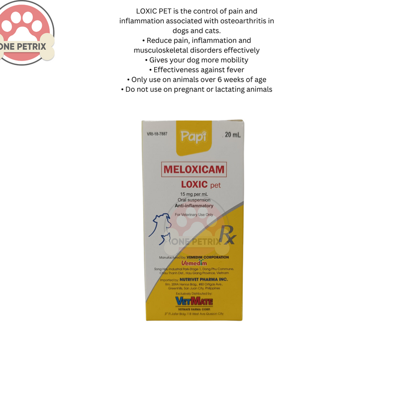 LOXIC PET is the control of pain and inflammation associated with osteoarthritis in dogs and cats.